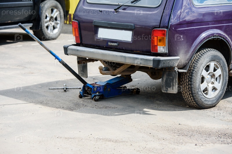 Автомобиль на СТО, стоящий на замене домкрата