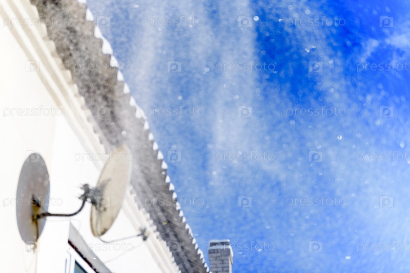 Снег летит над крышей дома