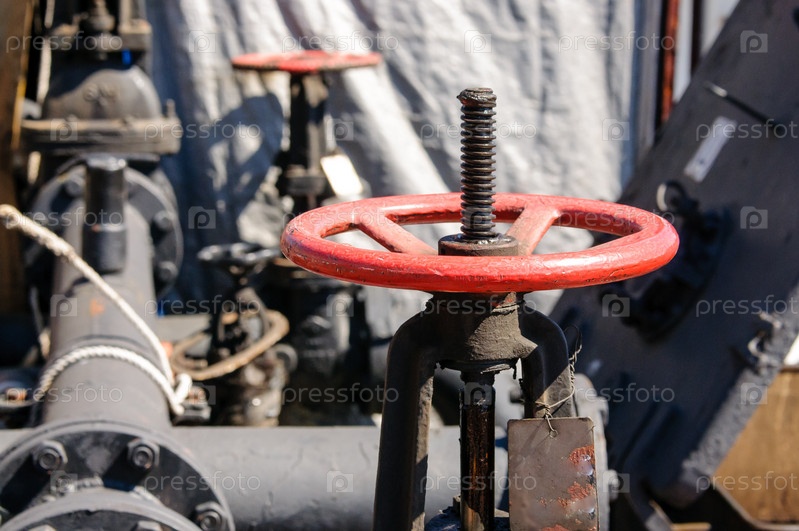 Россия, Санкт-Петербург, май 2021 г.: Красный клапан на палубе морского танкера
