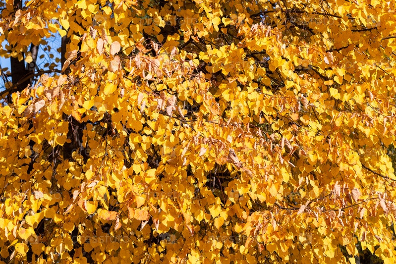 Оранжевые осенние листья на фоне голубого неба, обои природы
