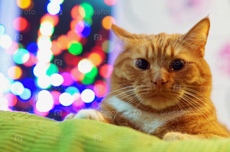 Кот красивый толстый рыжий домашний выглядит