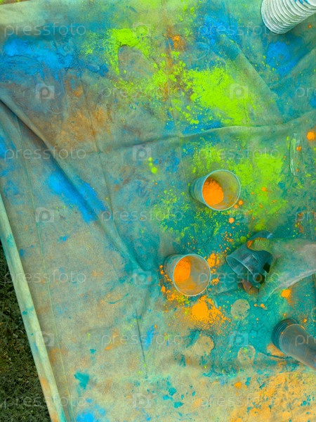 Разноцветные краски падуба разбросаны по столу