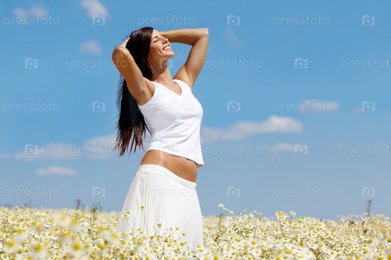 Красивая девушка среди ромашек