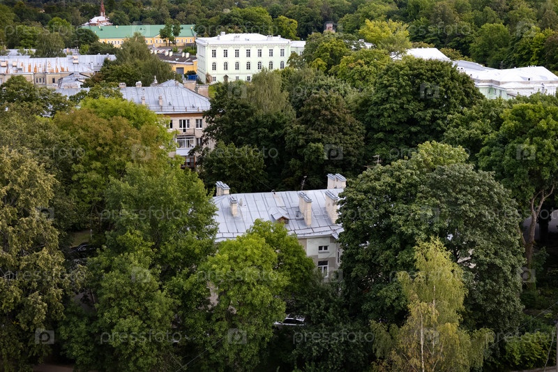 Дома утопающие в зелени, летний городской пейзаж, вид сверху