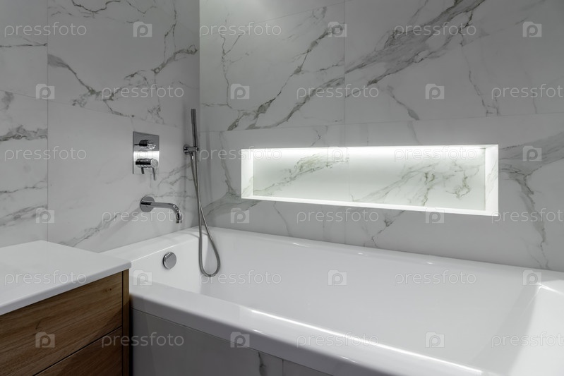 Интерьер современной ванной комнаты в квартире сразу после ремонта