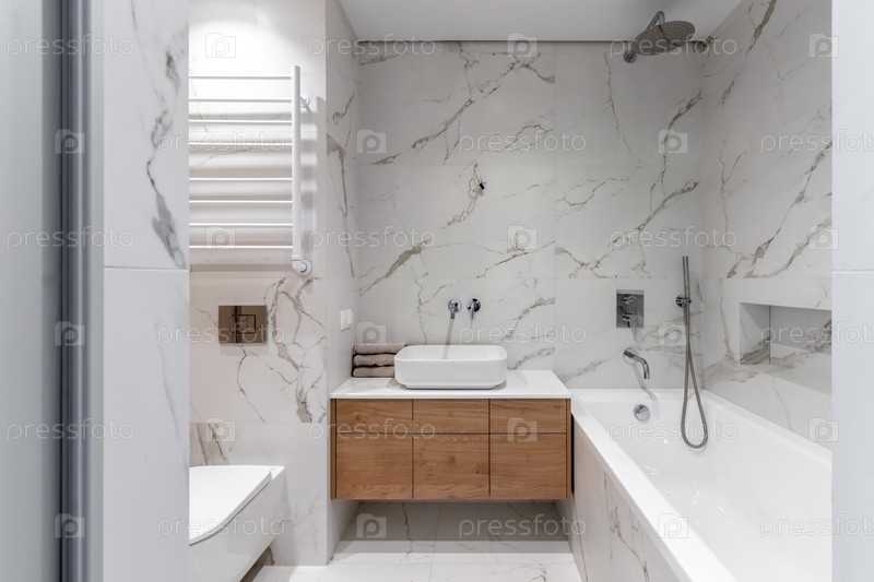 Интерьер современной ванной комнаты в квартире сразу после ремонта