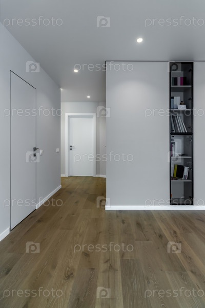 Интерьер пустой современной квартиры в светлых тонах сразу после ремонта