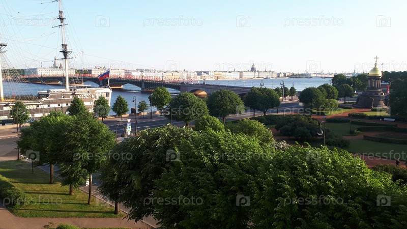 Красивый вечерний вид на реку Нева, Исакиевский собор и реку Нева, Санкт-Петербург