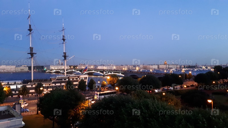 Красивый вечерний вид на реку Нева, Исакиевский собор и реку Нева, Санкт-Петербург