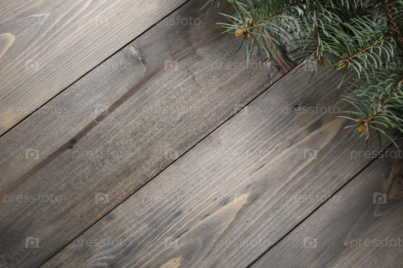 Новогодний рождественский фон еловые ветки на фоне серых досок с местом для текста