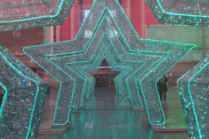 Новогодний рождественский декор Светлый коридор из лампочек в форме звезды. Место для фото-фотозоны. уличные фонари праздничные конструкции