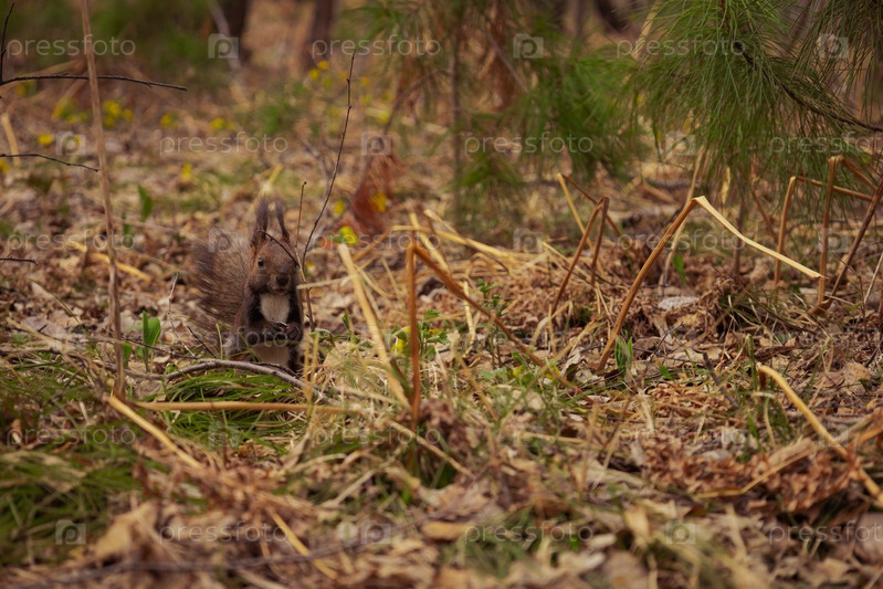 Милая белка жующая бобы