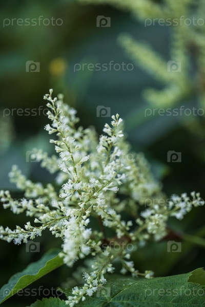 Белые соцветия на фоне зеленых листьев