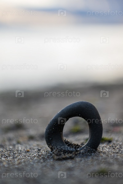 Черный камень в форме кольца на пляже