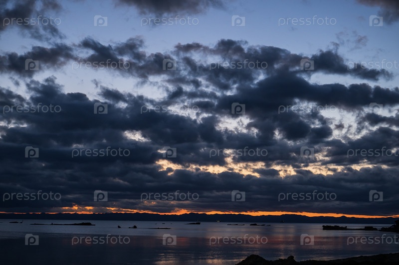 Закат над морем с облаками и отражениями на воде