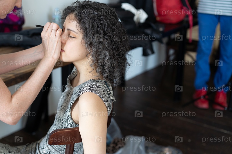 Женщина делает макияж красивой женщине