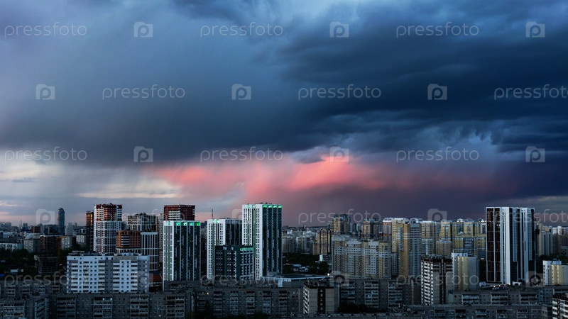Рассветные облака над мегаполисом раннего зимнего заката в Екатеринбурге
