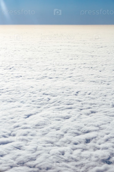 Вид с самолета сверху на завесу облаков