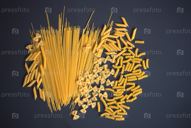Сырые макароны на темном фоне