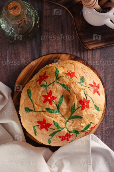Расписной хлеб, сочетающий хобби с творчеством на столе и вертикальном виде