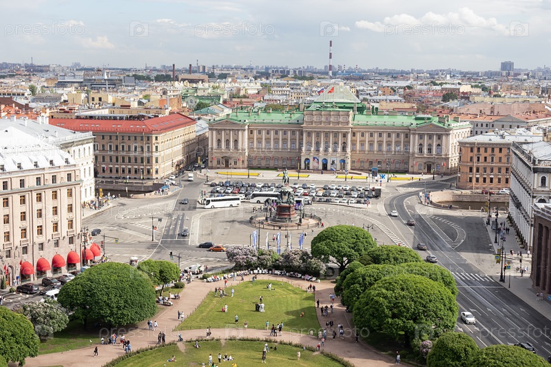 Исаакиевская площадь, вид сверху, солнечный летний день - Санкт-Петербург, Россия, Июнь 2022