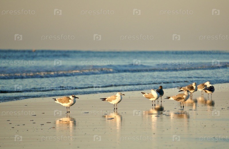 Чайки на побережье Атлантики на закате