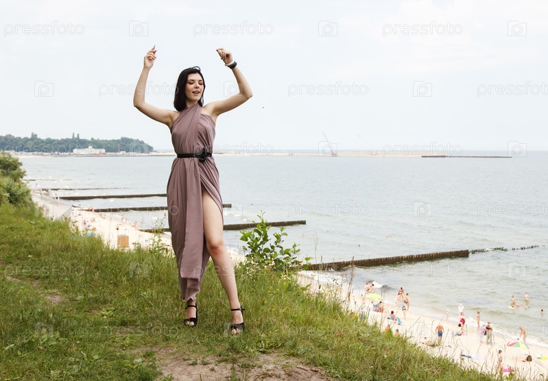 Молодая женщина стоит у моря