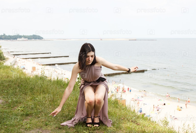 Молодая женщина стоит у моря