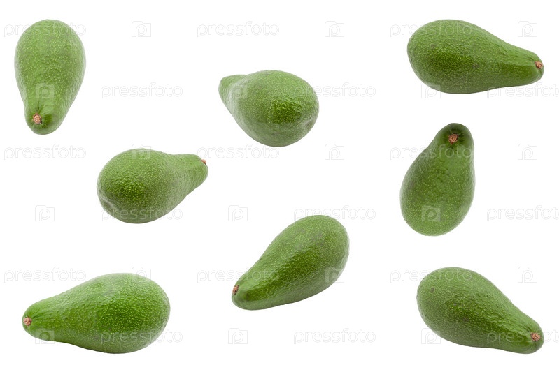 Множество ракурсов зеленого авокадо изолированно на белом фоне
