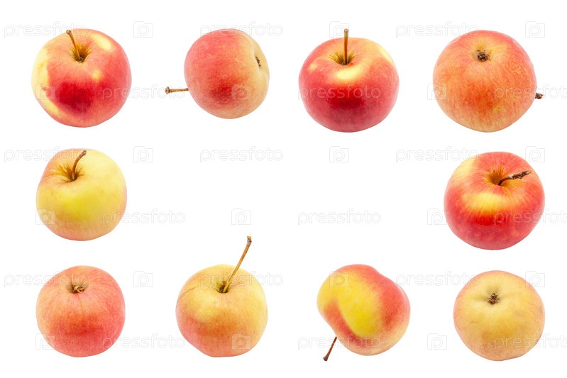 Множество ракурсов спелого яблока изолированно на белом фоне