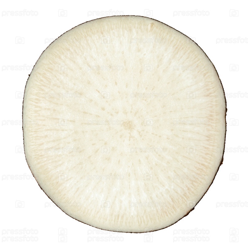 Поперечный срез черной редьки изолированно на белом фоне