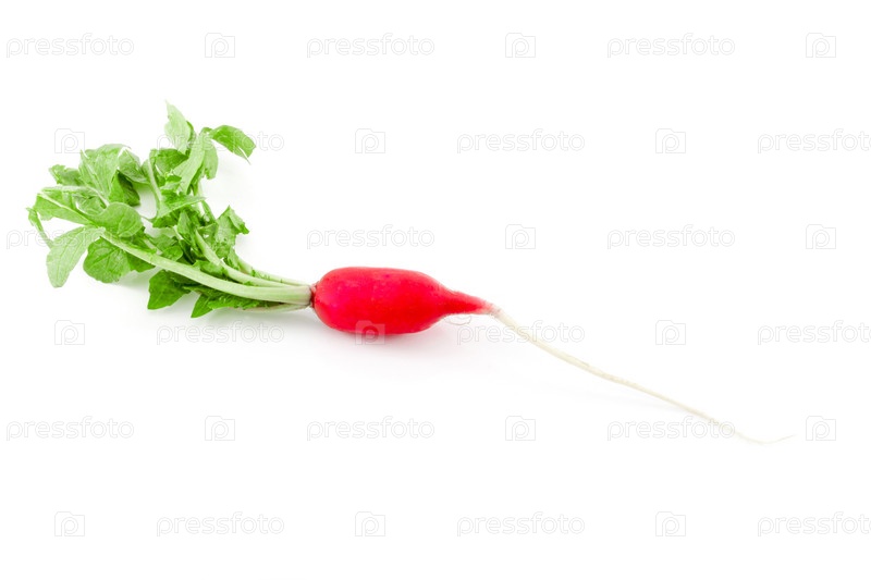 Свежий редис с ботвой на белом фоне