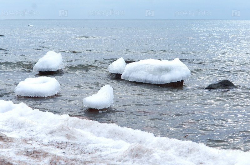 Море замерзло, пробито льдом, морское побережье во льду зима на балтийском море, гололедица на набережной