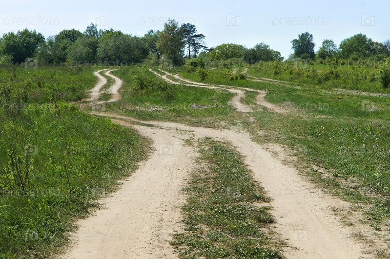 Двойная дорога в поле, грунтовые тропы через грубое заросшее поле