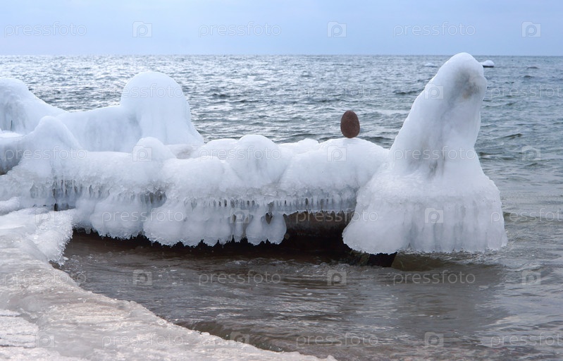 Море замерзло, пробито льдом, морское побережье во льду зима на балтийском море, гололедица на набережной