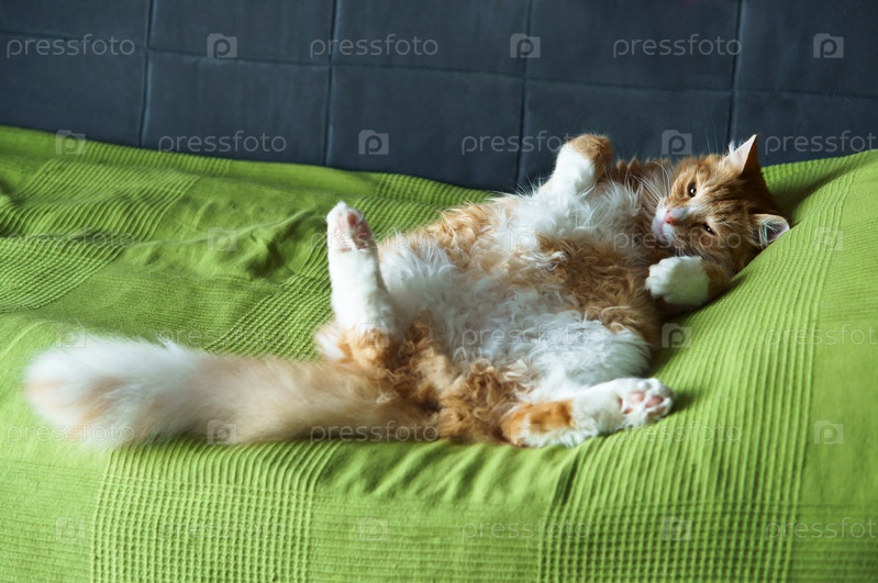 Рыжий домашний кот, домашний домашний кот, большой рыжий кот на диване