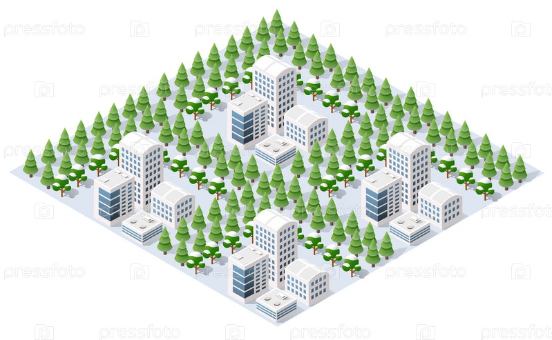 Изометрическая проекция зимнего снежного пейзажа. Природный аспект