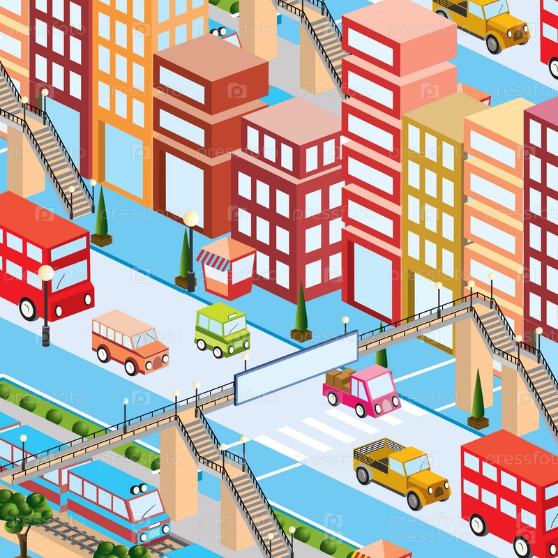 Железнодорожный вокзал с поездом и людьми изометрическая 3d иллюстрация улицы в центре города