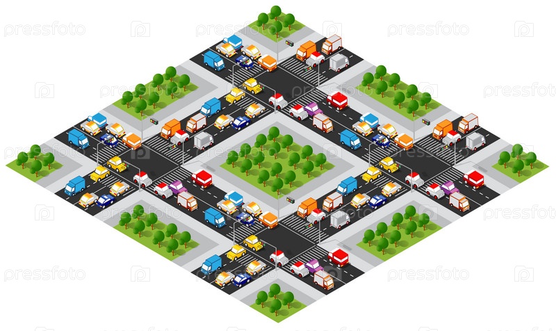 Перспективный вид сверху на городской квартал шоссе улиц