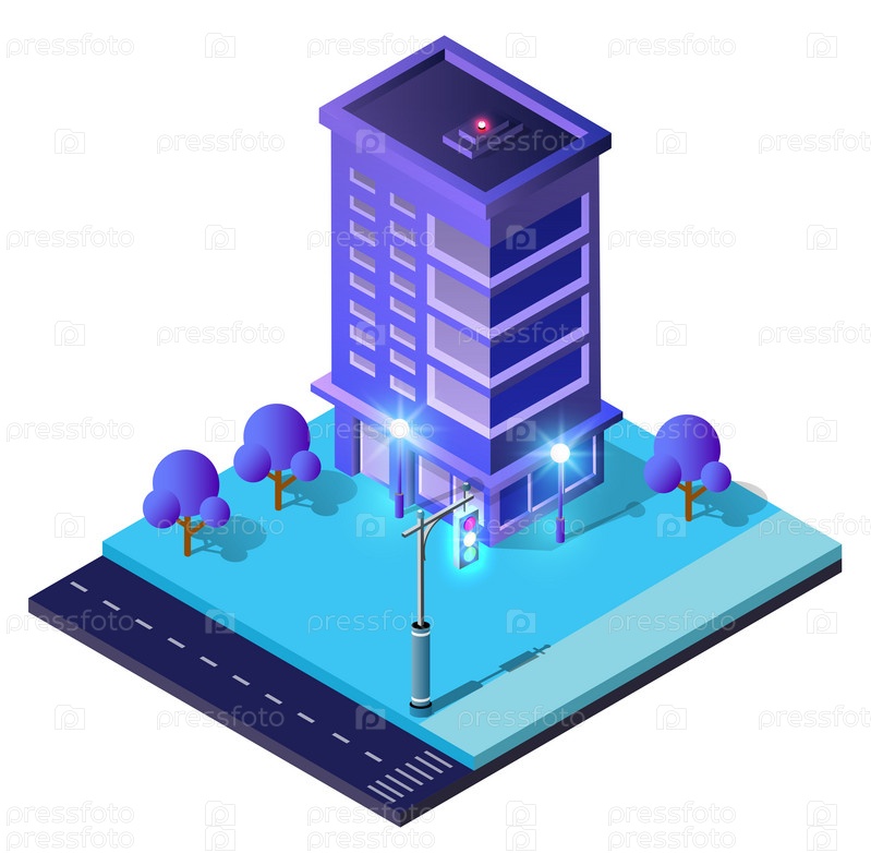 Ночной фон изометрический умный синий 3D иллюстрация