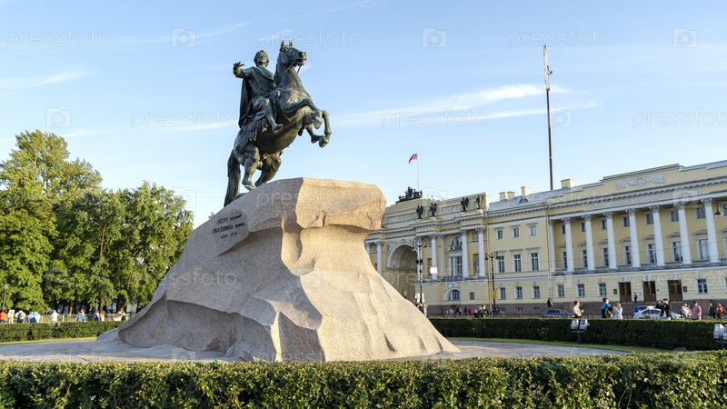 Санкт-Петербург, Россия, 22 июля 2023 г.: Памятник Петру 1 в Санкт-Петербурге