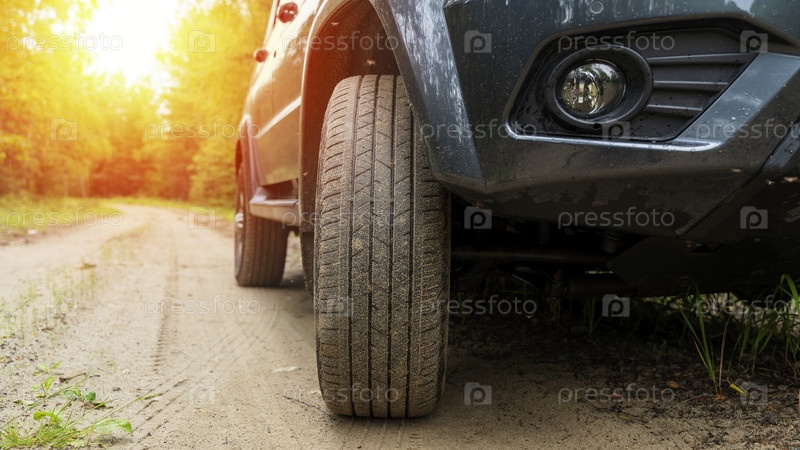 Внедорожник на лесной дороге в солнечный день