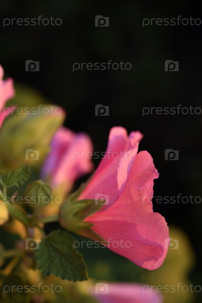 Розовые цветы мальвы на солнце летом. Мальвовые