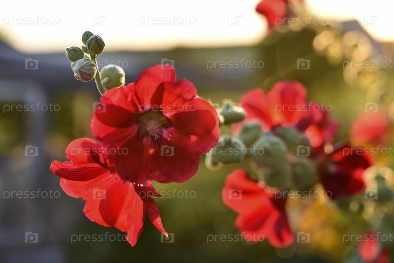 Розовые цветы мальвы на солнце летом. Мальвовые