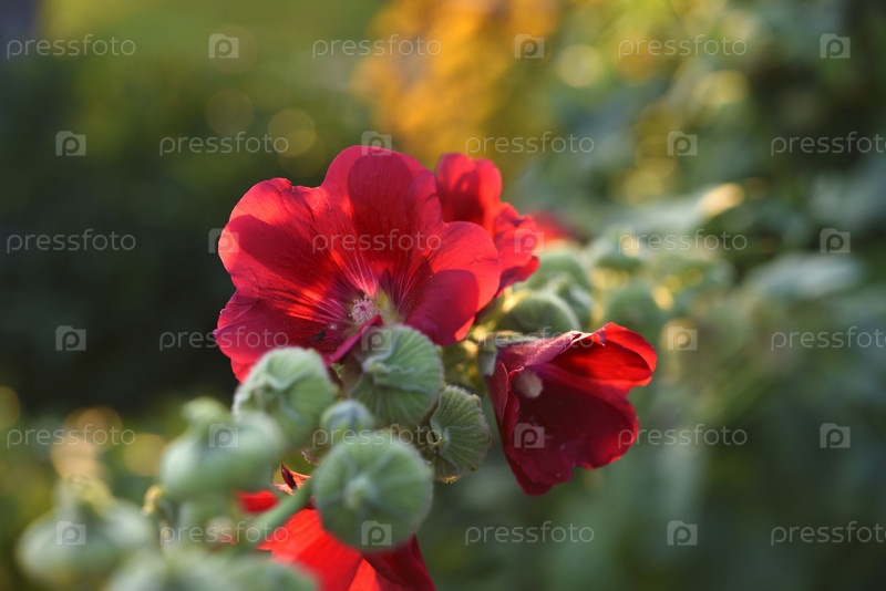Розовые цветы мальвы на солнце летом. Мальвовые