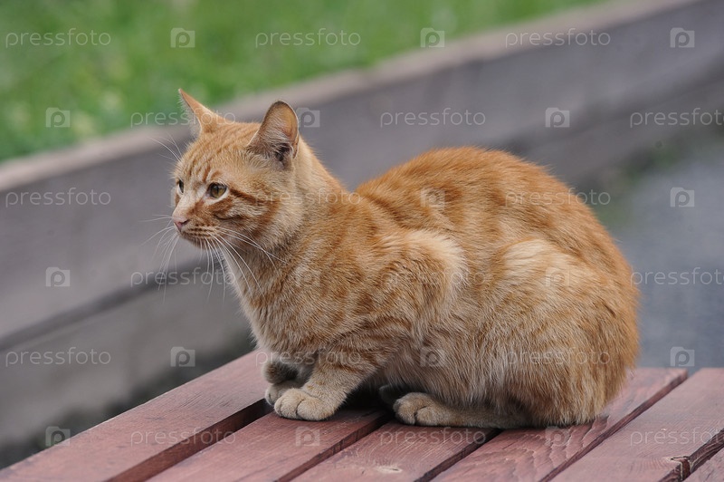 Сидит рыжий дворовой кот