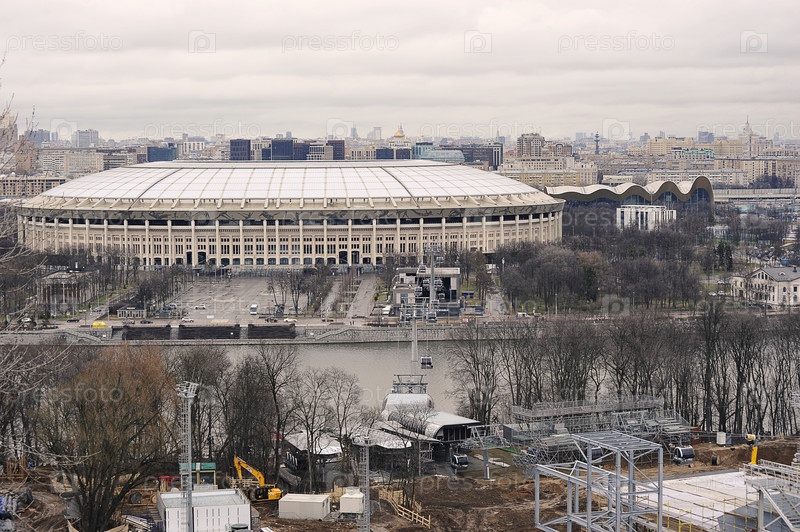 Вид на стадион Лужники с Воробьевых гор в Москве