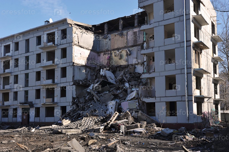 Руины дома - снос старых домов по программе реновации в северном Измайлово в Москве