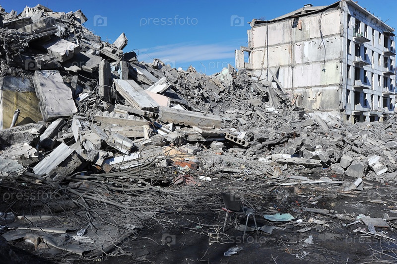 Руины дома - снос старых домов по программе реновации в северном Измайлово в Москве