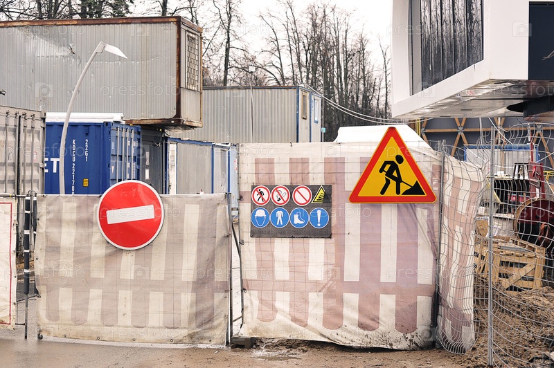 Перекрыт проход - знаки ремонтные работы - проход запрещен